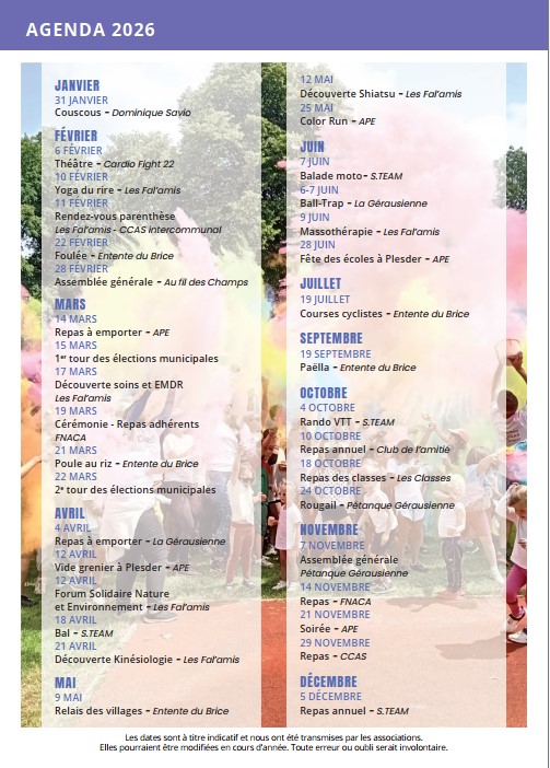 Agenda des manifestations