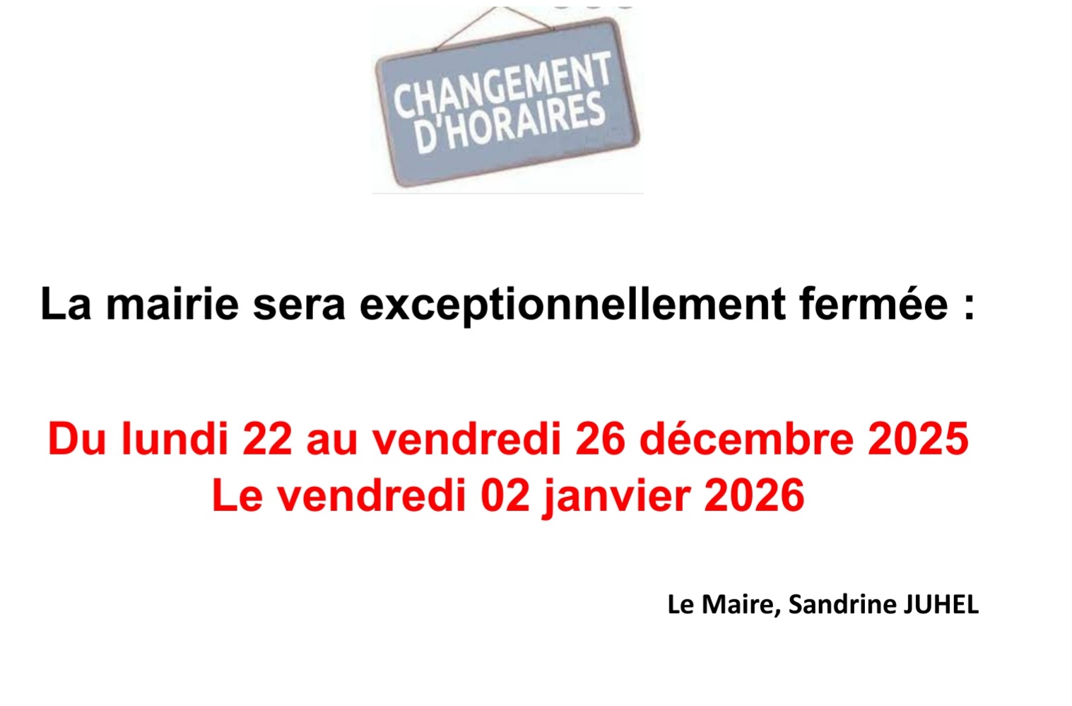 Vous êtes ici : Accueil > Fermeture exceptionnelle de la mairie